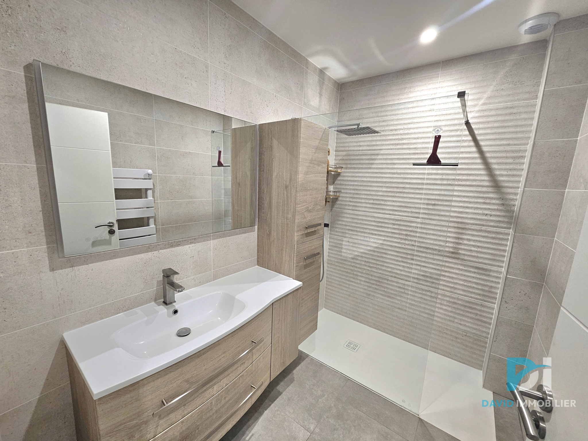 Au rez-de-chaussée, vous profitez d’une belle pièce de vie avec cuisine ouverte, baignée de lumière grâce aux larges ouvertures, ainsi que d’une chambre, d’une salle d’eau avec douche à l’italienne, et d’un WC séparé, permettant une vie confortable de plain-pied.